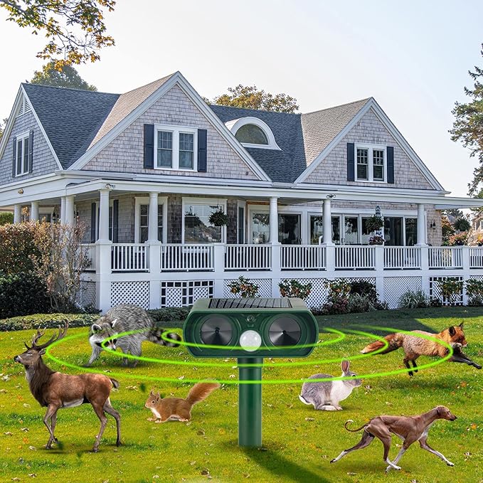- Effective Humane Animal repellent: The Ultrasonic Animal Repeller utilizes motion detection to emit powerful ultrasound and red indicator light, driving away various animals like squirrels, raccoons, and cats humanely without harming them or human