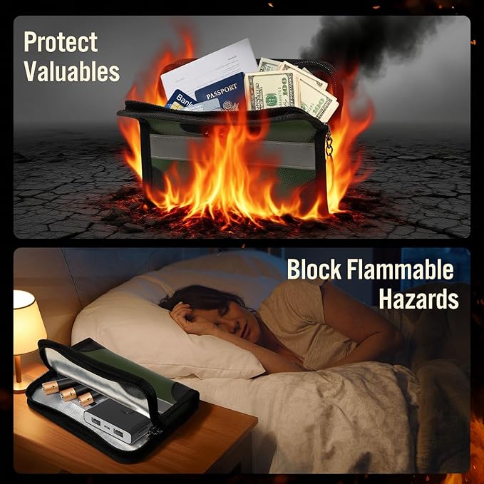 - Maximum Fireproof Protection:Made with fiberglass fabric + fireproof coating and a thickened aluminum foil lining, this fireproof cash bag resists burning inside and out, keeping your valuables safe even in emergencies.