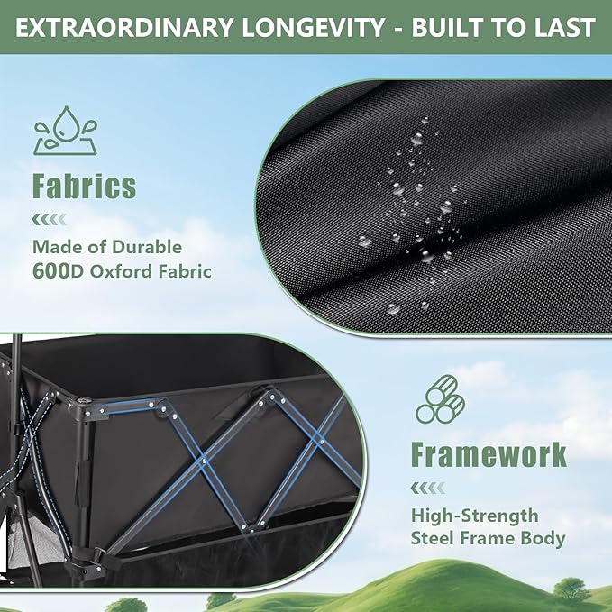 - Heavy Duty Double Decker Wagon with 600LBS Weight Capacity, Perfect for Carrying Coolers, Camping Gear, Gardening Tools, and Beach Essentials. Steel Frame & Reinforced Joints Ensure Maximum Durability.