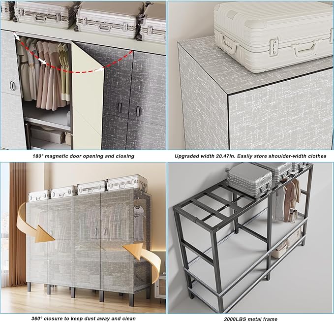 - 【wardrobe closet with doors】 Our portable wardrobe with magnetic doors that can be opened 180° and closed magnetically. You can create a protective barrier for your clothes without bending over to prevent pets from entering, so your clothes are always fresh and new. When guests enter your room, it is still tidy and clean to protect privacy.