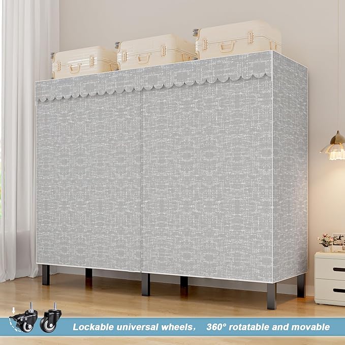 - 【wardrobe closet with doors】 Our portable wardrobe with zipper cover that can be opened 180° and closed magnetically. You can create a protective barrier for your clothes without bending over to prevent pets from entering, so your clothes are always fresh and new. When guests enter your room, it is still tidy and clean to protect privacy.