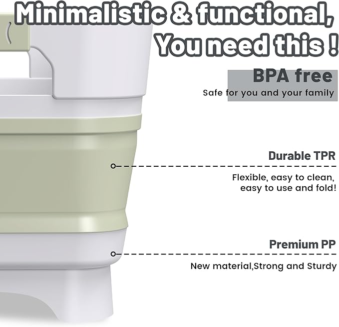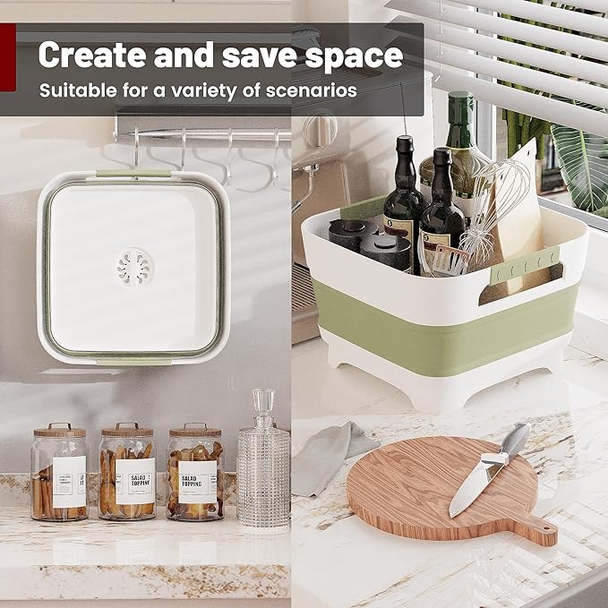 - COLLAPSIBLE DESIGN: Space-saving dish basin that collapses from 6 inches tall to just 2 inches when folded, perfect for compact storage