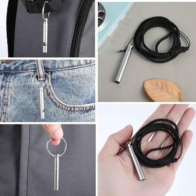 - 【Versatile Use】This titanium keychain whistle serves multiple outdoor needs: from camping and hiking safety to pet training and boating emergencies. The compact design functions equally well for coaching, refereeing, or survival situations. The included paracord lanyard adds utility for gear repairs in wilderness scenarios
