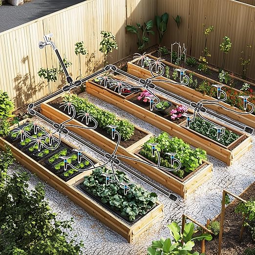 - Wide Applications: The irrigation system kit is great for patio vegetable gardens, plant greenhouses, flower, and raised beds,lawns small farm.Drip irrigation system is a highly customizable system. It could be set by your own needs.