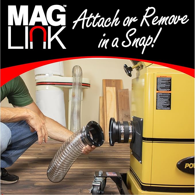 - QUICK CONNECT - The Mag Link dust collection system features magnetic dust collector fittings, ensuring a quick and efficient solution for moving 4" dust collection hose from one machine to another.
