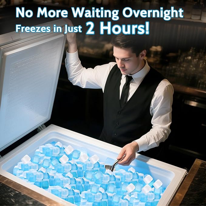 - đ” ă24/7 Ice Supply for Bars & PartiesăKeep a batch always frozen in your freezer â no more panic when guests arrive! Unlike traditional ice requiring 6+ hours of freezing, our reusable cubes re-freeze in just 2 hours.Say Goodbye to 'Ice Emergency'.