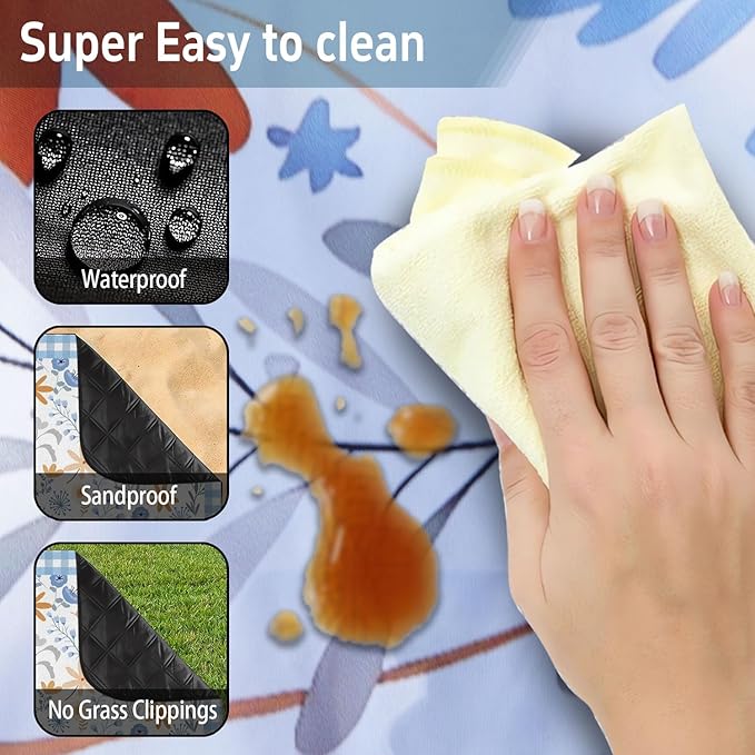 - Waterproof and Sandproof: Crafted with a special waterproof and sandproof surface, this blanket protects against spills, stains, and the discomfort of damp grass or sandy beaches, ensuring a clean and comfortable experience.