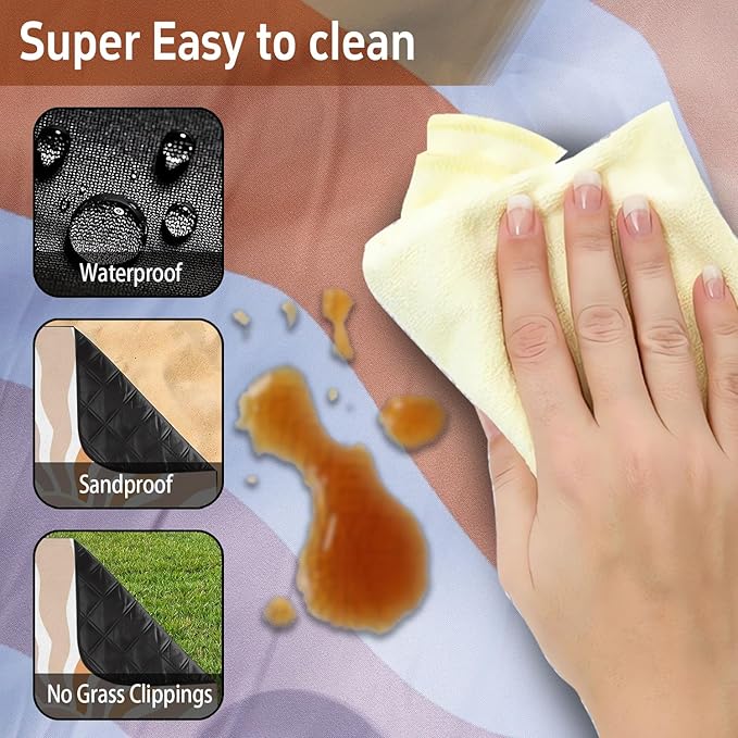 - Waterproof and Sandproof: Crafted with a special waterproof and sandproof surface, this blanket protects against spills, stains, and the discomfort of damp grass or sandy beaches, ensuring a clean and comfortable experience.