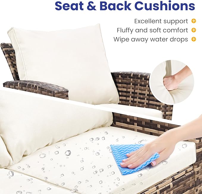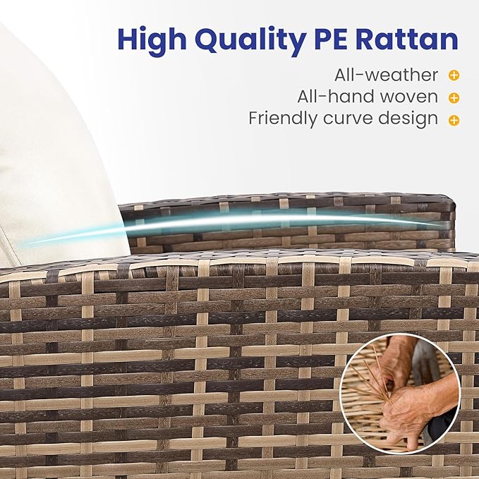 - Durable & Strength Structure:The patio conversation set is made of thick, high-quality rattan material that is weather-resistant, sturdy, and crack-resistant. This patio furniture set also features a powder-coated steel frame as its core for extra strength. Each seat can hold up to 310 lbs