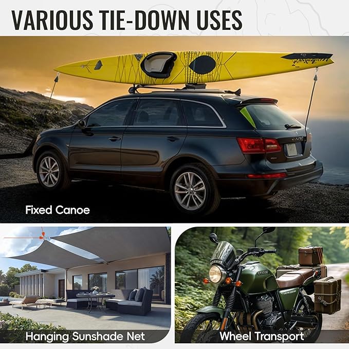 - 4. Reinforced Metal Gear: Each strap is equipped with a reinforced metal gear system that ensures smooth operation and long-lasting durability. This design minimizes slippage and enhances the reliability of your tie-downs