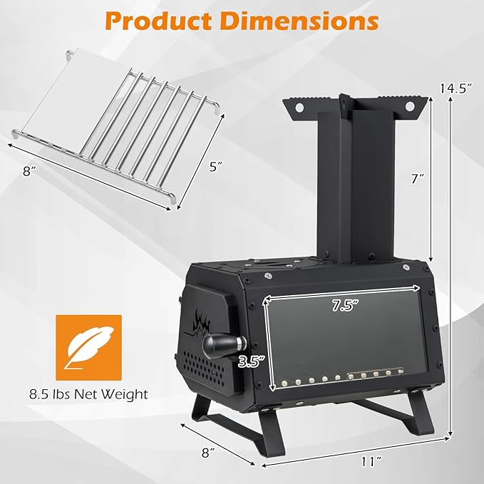 - 【 Stylish & Elegant Outlook 】 The camping wood stove boasts a stylish design with a heat-resistant glass-ceramic window that can withstand up to 2192℉. The transparent window allows you to enjoy the view of flames and keep an eye on the fire. The realistic fire patterns add a touch of authenticity to the overall aesthetic.