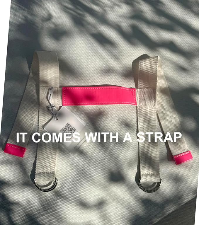 - Includes: 1 white canvas mat, faux leather handle, and webbing strap