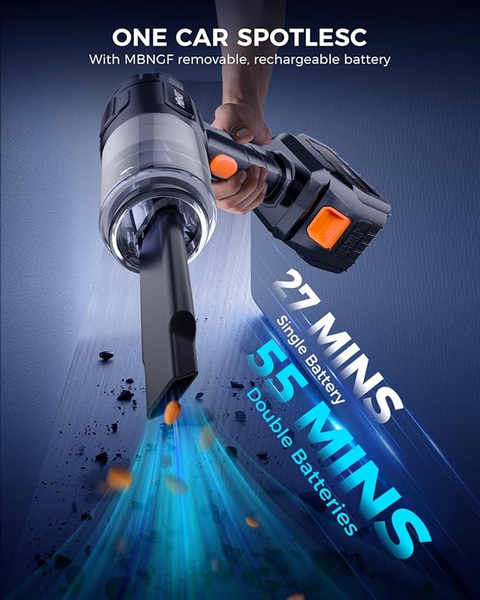 - 【Long-lasting Battery Life】 Equipped with a high-capacity battery, the MBNGF X9 ULTRA provides extended use time. Enjoy up to 60 minutes of powerful cleaning on a single charge, ensuring you can clean your entire car .