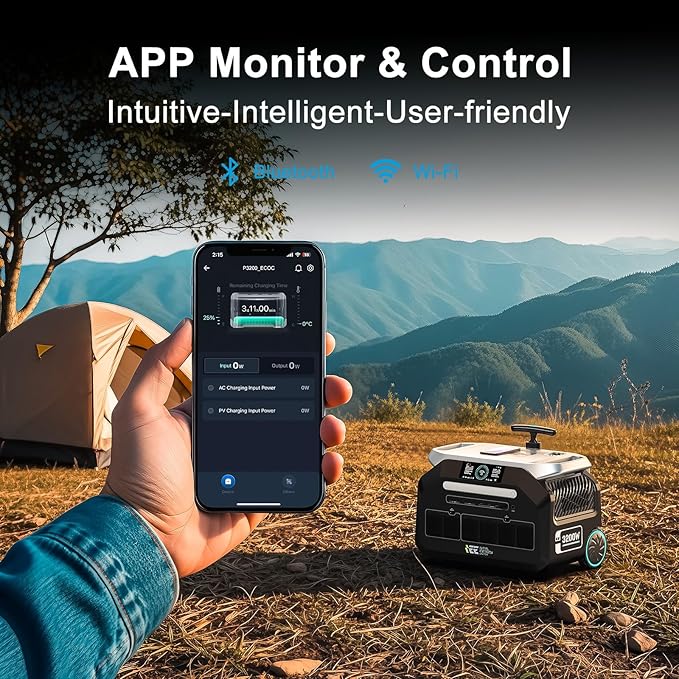 - 【Smart APP Control】You can use the mobile phone APP to connect to the indoor power generator, control the input and output power of the power station at any time, monitor the remaining power of the equipment, etc.