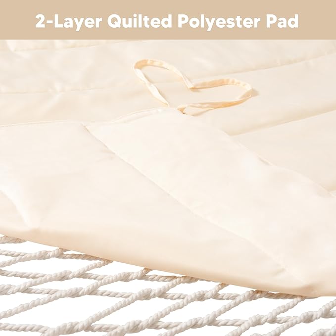 - Cotton Rope Hammock: The heavy duty cotton ropes are hand-woven with comfortable, long-lasting thread woven by hammock artisans. When you lay on the rope hammock, it helps you relieve stress and provide better blood circulation throughout the body. And thanks to the well ventilated mesh, your back wonβt be sweaty anymore