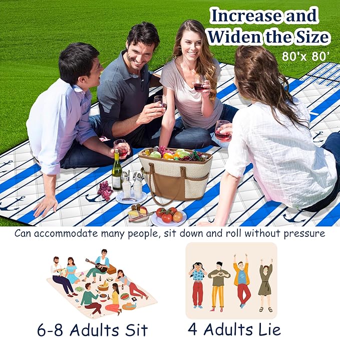 - 【🐋⚓🌟Larger and Thicker Design】This waterproof blanket can accommodate 6-8 people and can be used as a beach blanket,It create a designated space for family and friends to gather, eat together, play games, or simply enjoy each other's outdoors. They promote a sense of togetherness and make outdoor experiences more memorable and comfortable.