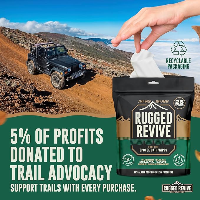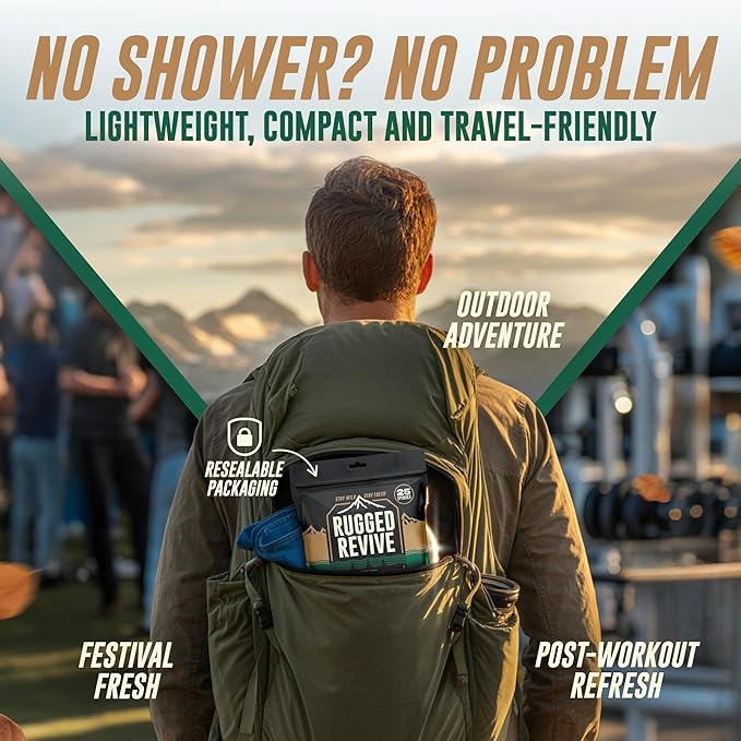 - COMPACT & TRAVEL-FRIENDLY PACKAGING: The resealable pouch holds 25 wipes and fits easily into backpacks, glove compartments, or gym bags. Stay fresh and clean while hiking, camping, backpacking, or living off-grid without hassle.