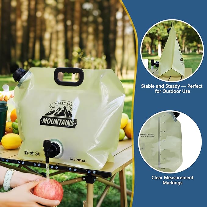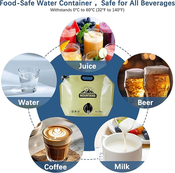 - Lightweight and Foldable – With a large 2.11-gallon capacity, this water container is easy to carry, lays flat for storage, and folds to save space. Ideal for camping, hiking, travel, and emergency situations.