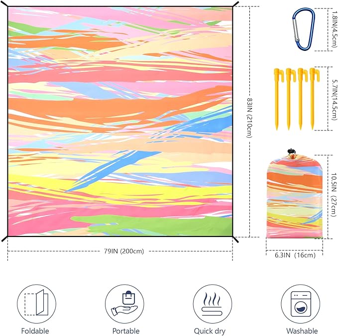 - đ´ăBeach Accessoriesă1 * beach blanket waterproof sandproof; 4 * Durable ABS Anchor Stakes; 1 * Carabiner; 1 * Carry Bag.