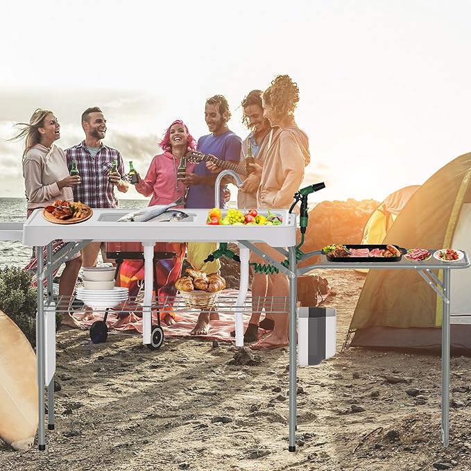 - 【All-in-One Outdoor Station】Equipped with measurement scale, knife slots, storage drawer, hose hook up and grid rack - perfect for fishing, camping, gardening, and outdoor cooking with organized convenience.