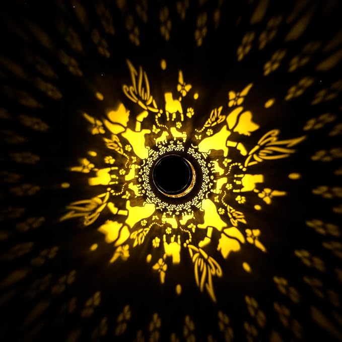- Elegant Dog Design: Add charm and warmth to your garden with this vintage-inspired solar lantern. Featuring a golden copper finish and a hollowed metal design, the lantern casts soft, glowing light with graceful dog patterns, creating a cozy and romantic atmosphere after dark