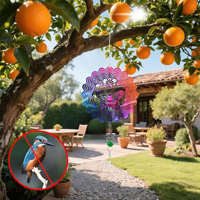 - 【Durable Metal Hanging Wind Sculptures】 Made with high-quality stainless steel and weather-resistant coating, our hanging wind sculptures withstand sun, rain, and wind without fading. A lasting outdoor decoration and practical butterfly wind spinner that helps deter birds from your plants and yard
