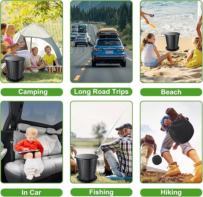 - 🏕️【Versatile Use】More than just a camp toilet, this travel toilet doubles as a collapsible stool, storage bucket, side table or trash can. Versatility aside, this portable toilet for camping is built with ergonomics and user-friendliness in mind. This travel toilet caters to everyone's needs at any time and is the best choice for camping, hiking, beach, road trips, car, truck drivers, pop up tent, emergencies, or even home backup.