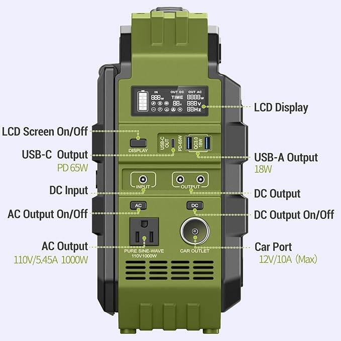 - 【Powerful, Versatile Solar Generator】With a 614.4Wh capacity and 1000W pure sine wave AC inverter (2000W surge), our solar powered generator can power up to 7 devices simultaneously(≤1000W), including laptops, phones, lights, fans, cameras, CPAP machines, mini-refrigerators, and more