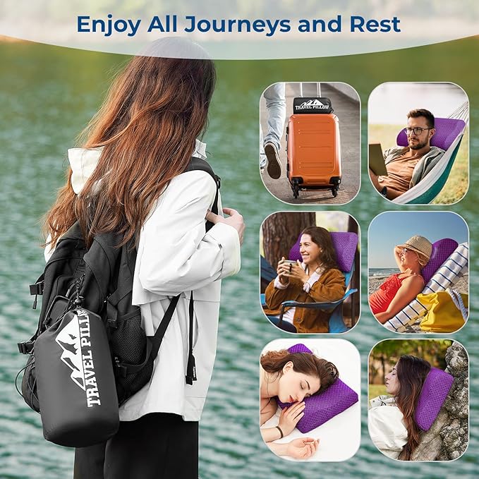 Travel Pillow Memory Foam Pillows, Ergonomic Wave Cervical Neck Pillow for Neck Pain Relief, Compressible Medium Firm Side Sleeper Pillow, Ideal for Camping, Office, Home & Bed (Purple, L)