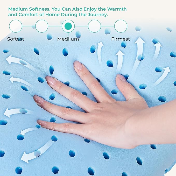 Travel Pillow Memory Foam Pillows, Camping Pillow-Compressible Medium Firm, Breathable Cover, Ideal Backpacking Hiking, Bed Pillows, Airplane and Car (Apricot Yellow, M)