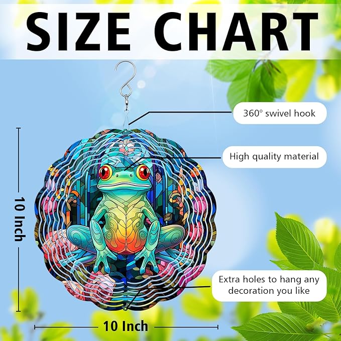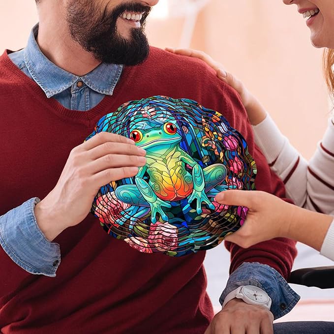 Frog Yard and Garden Wind Spinner, Unique 3D Hanging Frog Wind Spinner