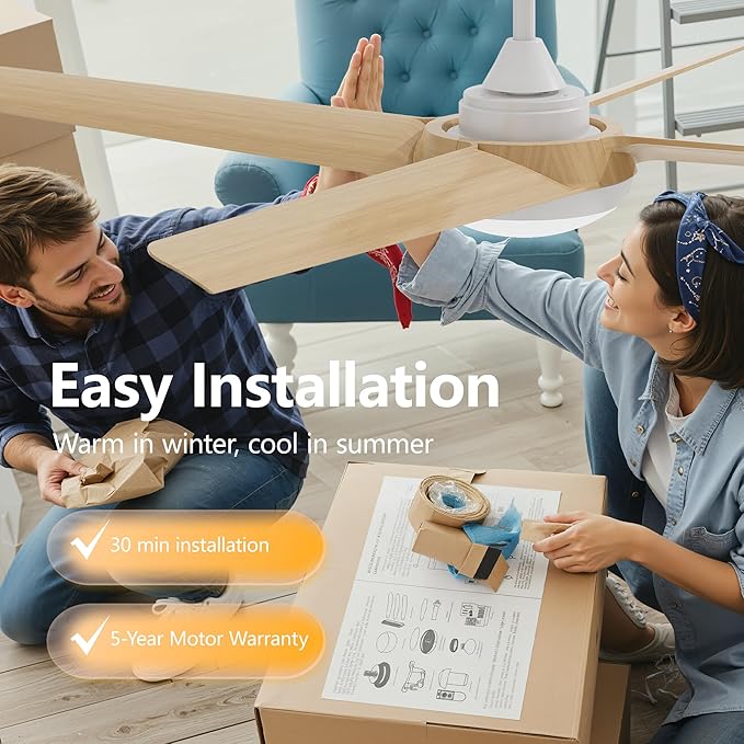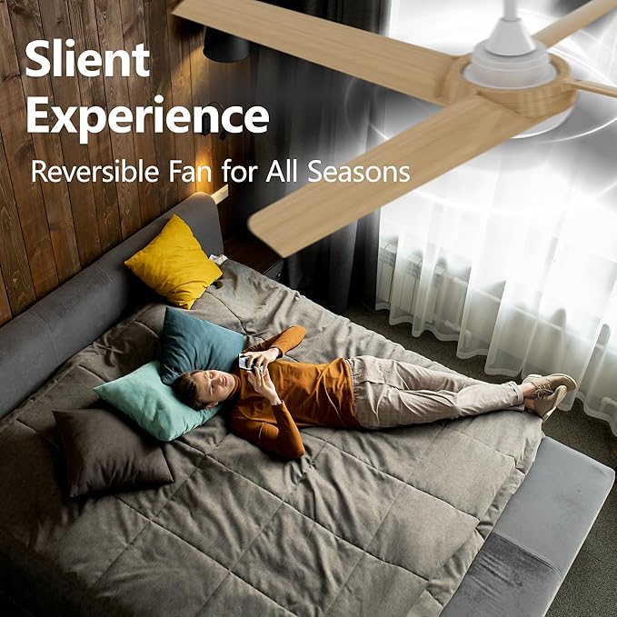- 🌲Natural Wood Grain 4-Blade Design Crafted with ABS blades in a light oak wood finish, this fan combines modern aesthetics with the warmth of nature. Elevates Scandinavian or minimalist interiors.