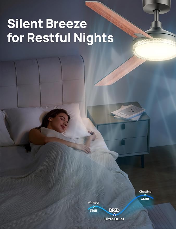 - Smart Ceiling Fan Experience: Switch fan speeds, scenes, brightness and timers using the DREO app, Alexa and Google home voice commands to tailor every setting to your needs.