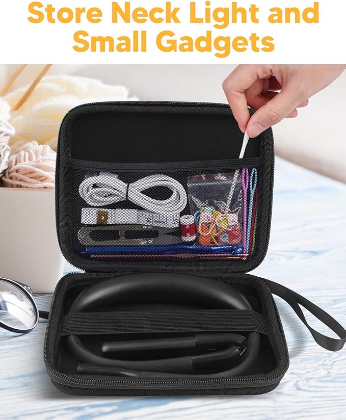 Book Light with EVA Case: Eye Caring 3 Color Dimmable Neck Reading Light, Bendable Neck Lamp with Power Display/Timer, Rechargeable Reading Lamp Knitting Crochet Accessories Sewing Craft Light