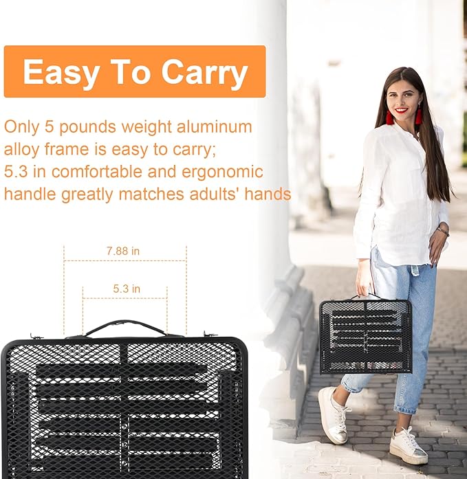 - Easy to Carry - This 2 feet folding table is very convenient to open and storage. When it is folded the package size is 17 inches x 12.5 inches x 2.9 inches with only 5.7 lbs Weight. The aluminum folding table can be easily carried and stored indoors or outdoor. Individual 6 Table Legs Storage Holder - Can be used to place the table legs individually, compared to the normal structure without storage more convenient and will not lose the table legs. Compared to the Normal S-Structure, the new structure of the storage will not be loose after a long time of use, will not have been shaking impact sound