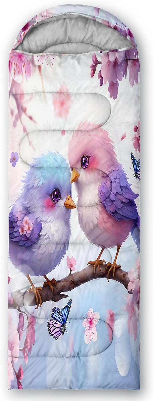 - Unique Bird Design:This Bird pattern sleeping bag is made of 3D digital printing with vibrant colors and patterns,size: 31W x 90L inches,temperature range: 32℉-77℉ (0℃-25℃),it also also have a weather resistant waterproof design to keep you warm and prevent you from any dampness,can be used in 3 seasons