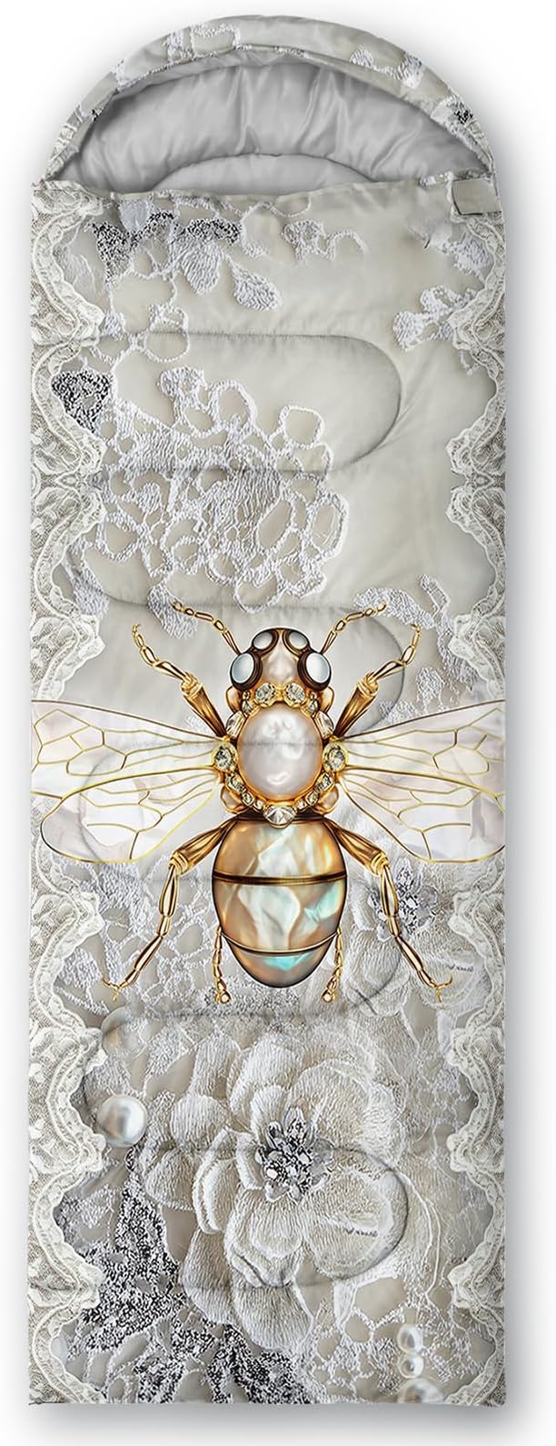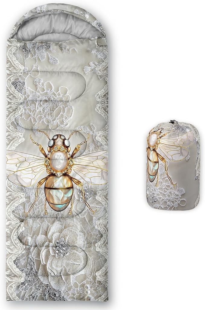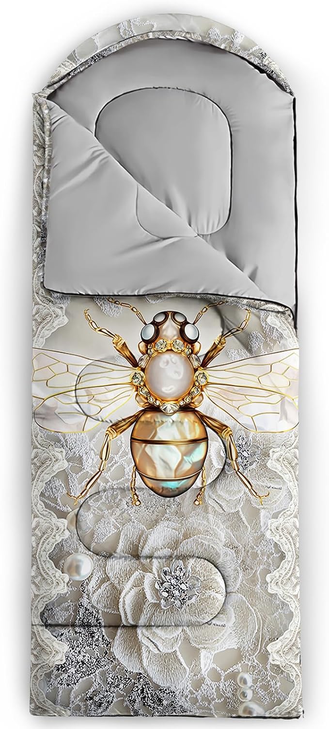 - Unique Bee Design:This Bee pattern sleeping bag is made of 3D digital printing with vibrant colors and patterns,size: 31W x 90L inches,temperature range: 32℉-77℉ (0℃-25℃),it also also have a weather resistant waterproof design to keep you warm and prevent you from any dampness,can be used in 3 seasons