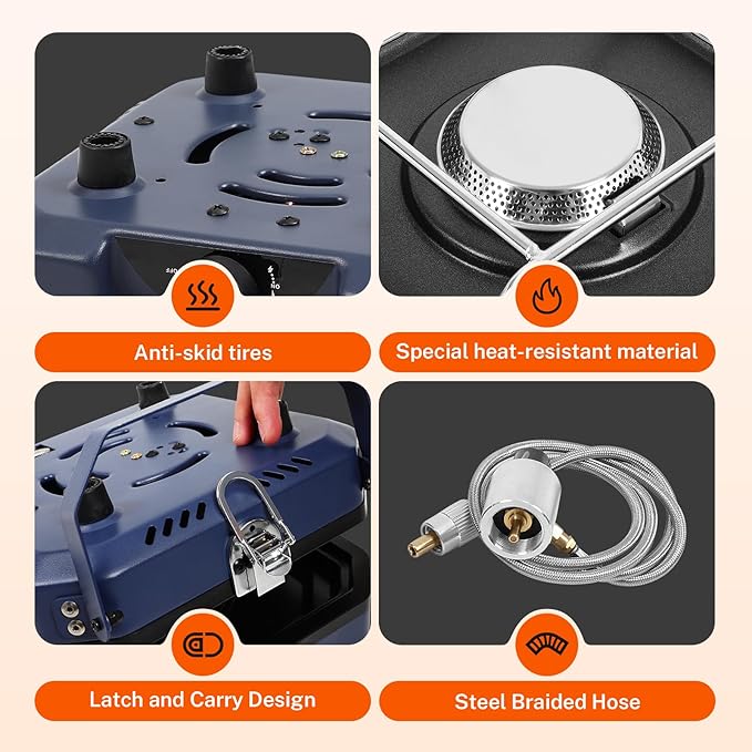 - HIGH HEAT DUAL BURNERS: Propane camp stove features dual stainless steel sealed burners with a total of 16,000 BUT of cooking power for even heating; 2 burners with independent on/off controls can be used at the same time for efficient cooking and a variety of cooking options, from slow simmering to high-heat searing