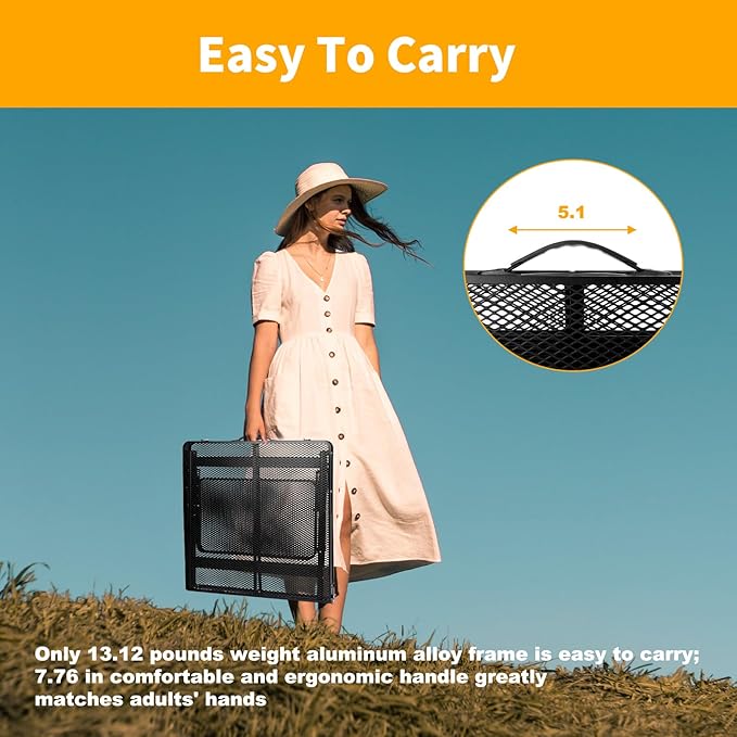 - Easy to Carry and Install - This 4 feet folding table is very convenient to open and storage. When it is folded the package size is 24 inches x 24 inches x 2.9 inches with only 13 lbs Weight. The aluminum folding table can be easily carried and stored indoors or outdoors