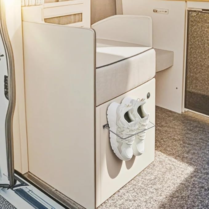 - Practical Design: This RV shoe holder uses a base plate to hold the wall in place and thick iron wire to hold the shoes in place. Simple but practical and beautiful appearance.
