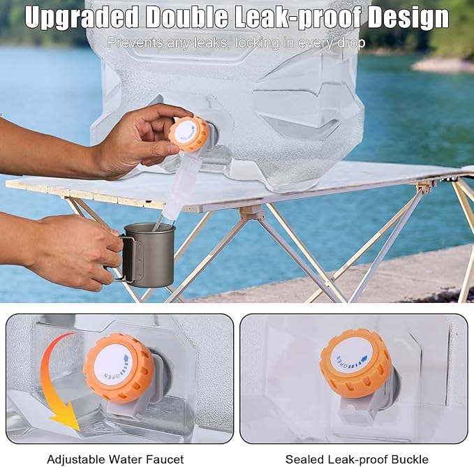 - 3.2 Gal Large Capacity: The 3.2 gallon water jug is enough for two people to camping for 3 days. At the same time, the water tank will provide you with emergency water in places where water resources are limited