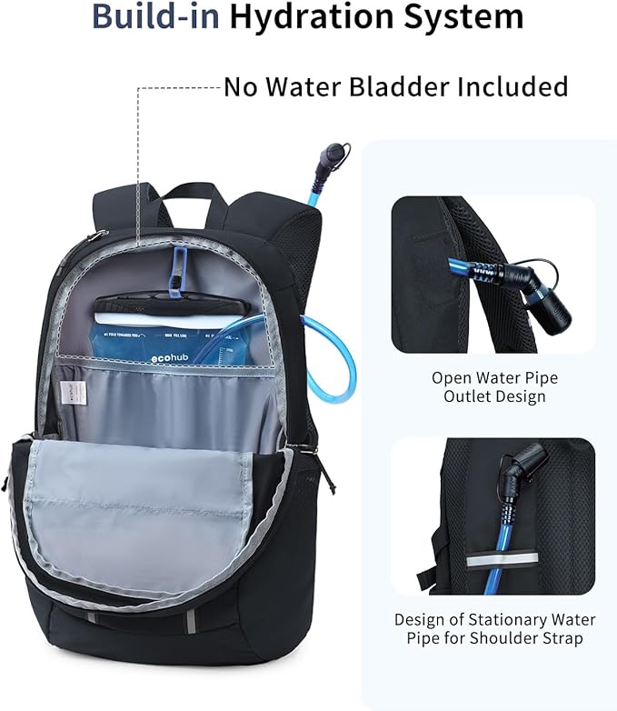 - 【Inner and Outer Connection Design】 Backpack has hooks inside the main compartment to hold the hydration bladder, and the straw exits from the right side exit of the backpack. Regarding this exit, you can also use it as a USB cable exit. This will better energize you or your electronic devices while in hiking , traveling, camping and so on(No Water Bladder Included)