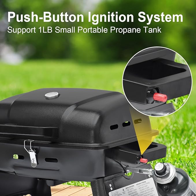 - ✅ Powerful 10,000 BTU Burner: The stainless steel burner delivers consistent high heat, fast preheating, and even cooking performance using a standard 1 lb propane tank