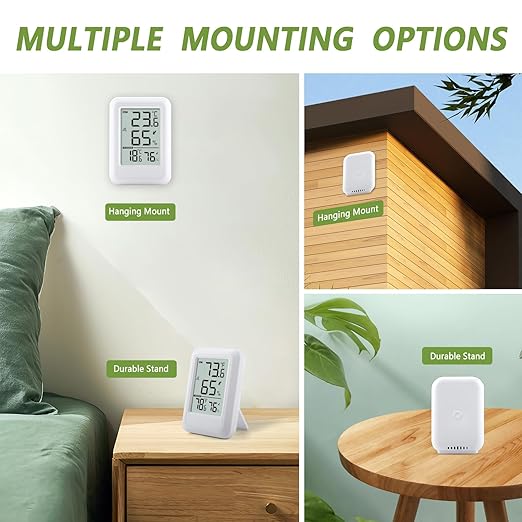 - 【2 mounting Options】 It can be stand in the desk or hang on the wall as you like. The station needs 2*AAA Battery (included); Sensor needs 2*AAA Battery (included). The battery life is minimum 12 months for base station with one sensor. When the sensor shows the low battery icon that means you need to change the new battery in the sensor