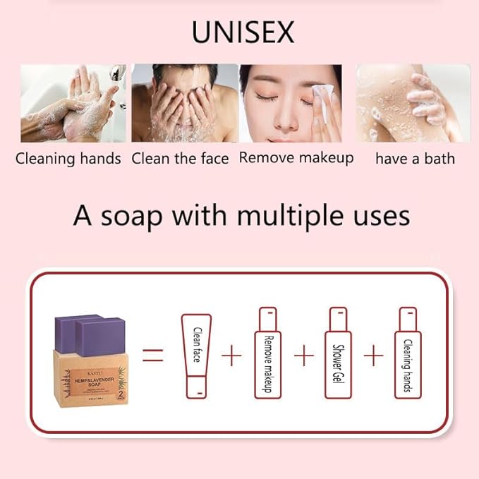 Hemp and Lavender Oils Soap Bar for Face & Body,Moisturizing,Softer Skin,Natural Handmade,Hypoallergenic Beauty Bar Sensitive Skin With Gentle Cleanser,Men and Women,2x120g
