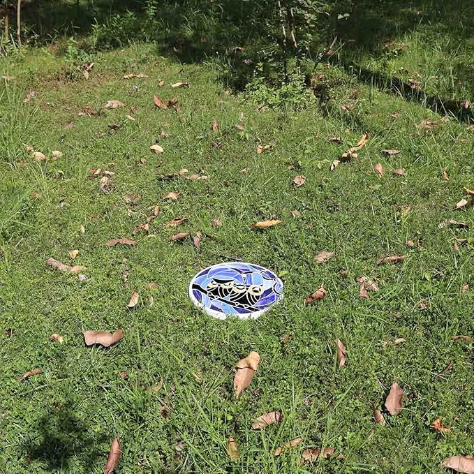 Bieye MSS005 Tiffany Style Stained Glass Mosaic Decorative Stepping Stone for Garden Decor (Owl, 12" Round)