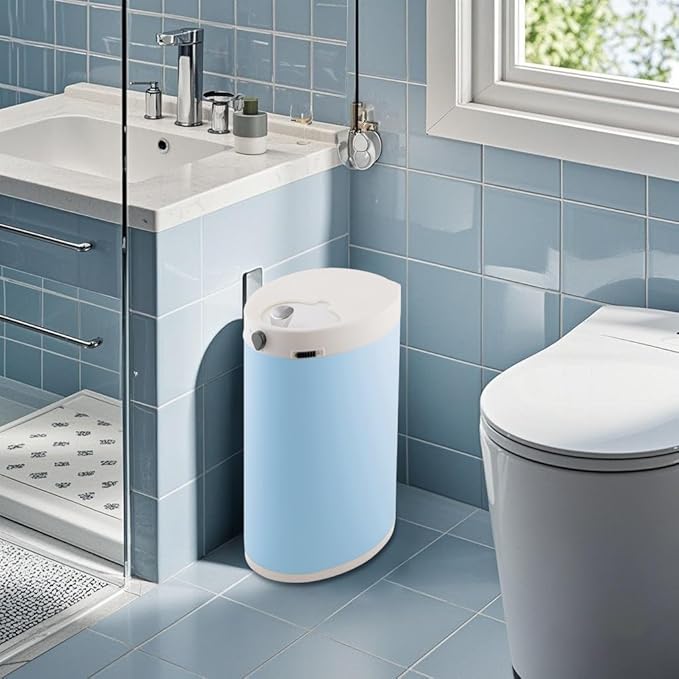 - Modern Nursery Trash Can – Sleek steel design in soothing in blue fits any nursery decor. Sturdy and rust-resistant for long-term use. This Blue diaper pail is perfect for baby room.bathroom, bedroom, nursery.