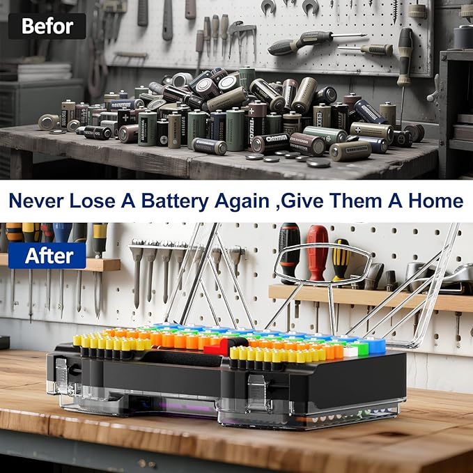 - Super-large Capacity Battery Storage Box: The battery holder organizer can store up to 285+ different types of battery packs and the BT168 battery tester. Battery tester can help you quickly test the lifespan of battery packs and classify them, save storage space, and make it convenient for you to find the batteries you need. Great battery organizer, Good quality, smooth design.