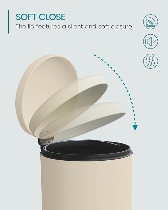 - Large Capacity & Tall Design: This 8 gallon stainless steel trash can features a round, tall design (11.81" x 15.16" x 26.77"), and the creamy beige hue blends with any décor, perfect for efficient waste disposal in kitchens, offices, or bathrooms. living room, cafes etc.