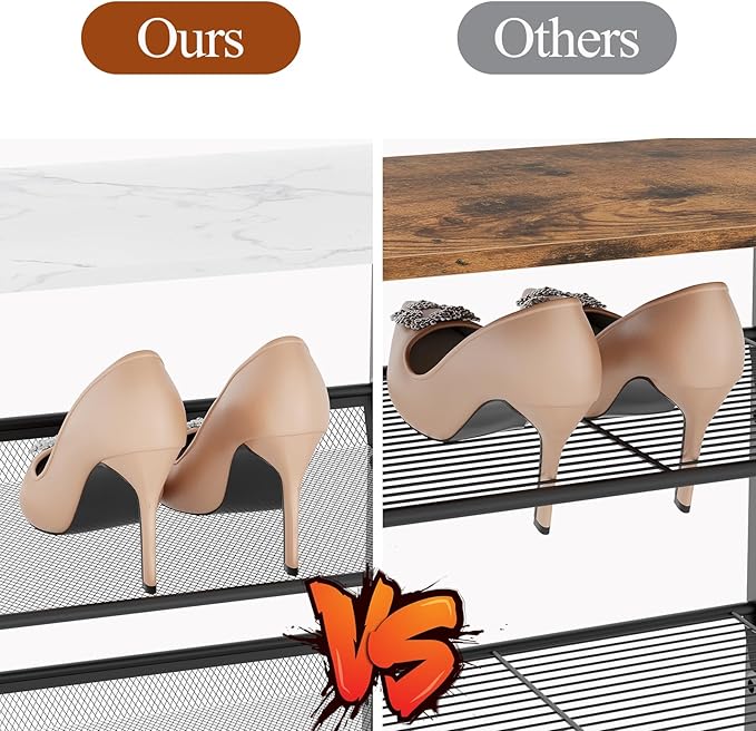 - 【STRONG INTERLAYER】The compartments of the shoe racks are made of iron plates with smaller intervals to keep the heels of women's heels from falling off. Behind the compartment is a baffle to prevent shoes from falling.